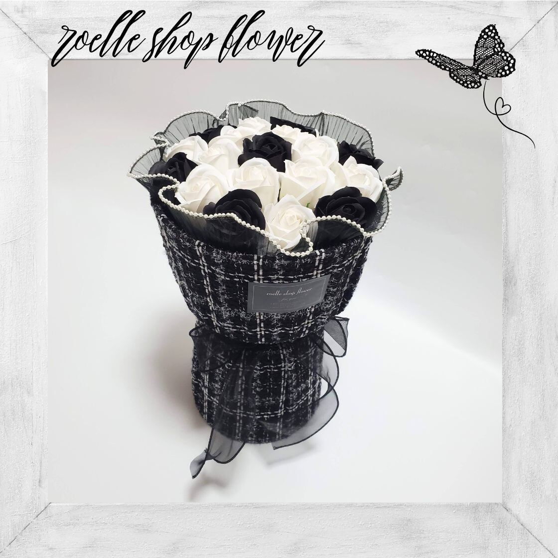 T-11 ブラック ツイードブーケ ソープフラワー ワンホンブーケ ブーケ 花束 モノトーン | roelle(ロエル)|ロエルショップ|ロエルショップフラワー|ロエル公式【roelle shop flower】